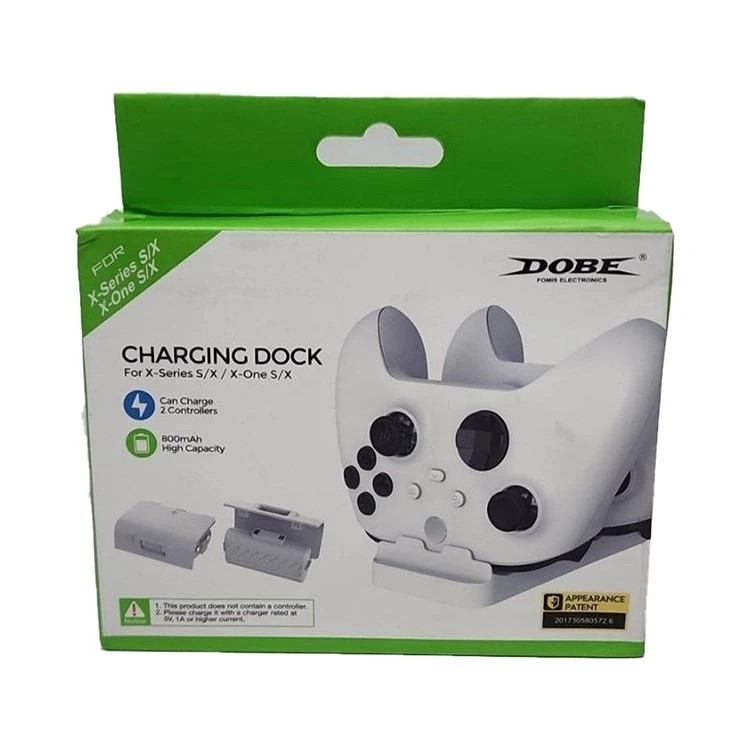 تولید جدید شرکت Dobe مخصوص دسته های سری جدید Xbox Series استند شارژ مخصوص ۲ عدد دسته دارای چراغ شارژ دسته دارای کابل برای تامین برق استند شارژر دارای ۲ عدد باطری پک ۱۲۰۰ میلی آمپر ۲ عدد سوکت Type Cجهت اتصال به دسته کیفیت کالا:فوق العاده
