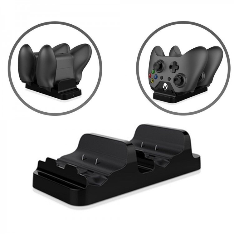 استند مخصوص شارژ کنترلر ایکس باکس وان میتواند دو کنترلر ایکس باکس وان را به صورت همزمان شارژ کند. این محصول همچنین دارای دو باتری قابل شارژ مخصوص کنترلر ایکس باکس وان است تا دیگر نیازی به باتری قلمی نداشته باشید. همچنین، با نصب این باتریها روی کنترلر خود، میتوانید هنگام شارژ کنترلر نیز بازی کنید.