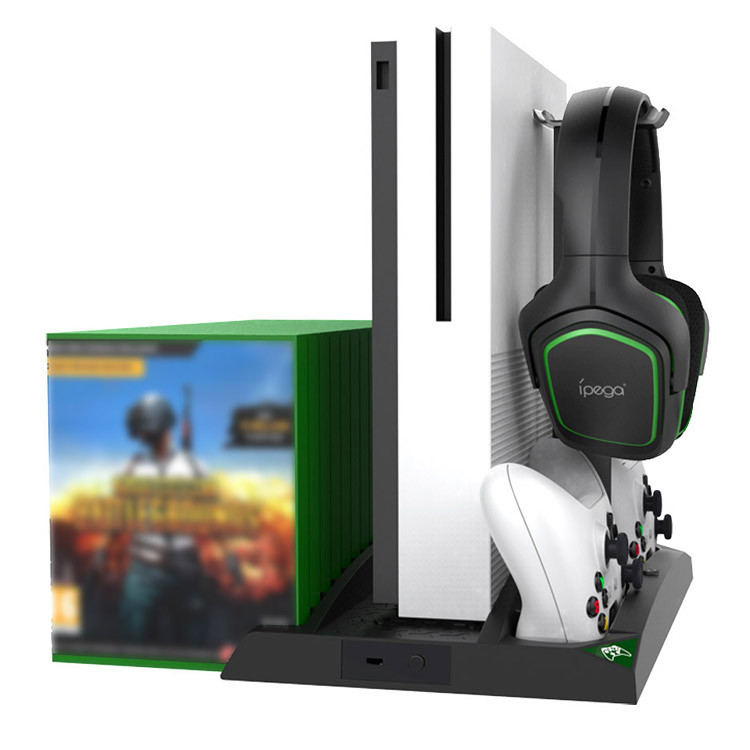 این پایه دارای یک آویز برای نگهداری هدست و ۱۷ عدد فضای دیسک بازیهای شما است. شما میتوانید این پایه را به ایکس باکس یا منبع برق خارجی وصل کنید.