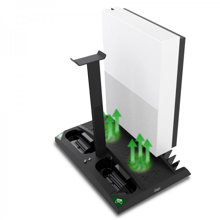 پایه عمودی شش کاره iPega مخصوص XBOX One به شما این امکان میدهد تا تمام مدلهای XBOX One از جمله S و X را به صورت عمودی قرار دهید. این پایه دارای دو عدد فن برای خنک کردن کنسول شما است.