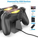 این پایه شارژر با کابل USB به منبع برق وصل میشود که میتواند کنسول پلی استیشن 4، پریز برق یا هر منبع برق دیگری باشد. جریان برق در این پایه شارژر ثابت است و آسیبی به کنترلر شما نمیرسد.