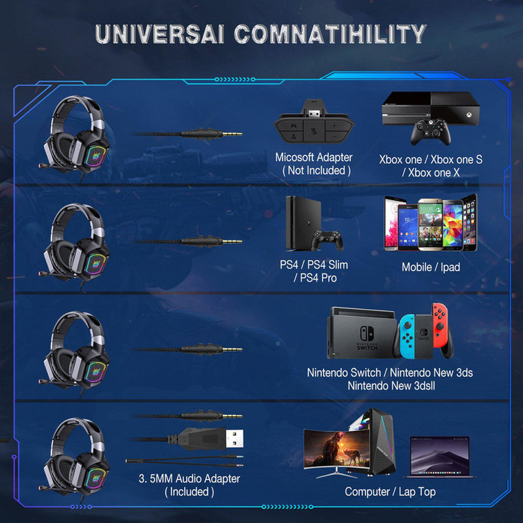 هدست گیمینگ Onikuma X8 دارای صدای استریو، میکروفون و چراغ LED است و یک هدست مقرون به صرفه برای کاربران کامپیوتر، پلی استیشن 4، ایکس باکس و نینتندو سوییچ است. هدست Onikuma X8 دارای درایورهای بزرگ 50 میلیمتری با صدای استریو فراگیر است تا در هر لحظه از بازی، بر محیط مسلط باشید و در مسابقات، یک قدم از رقیب خود جلوتر باشید. این هدست دارای بدنه سبک و مقاوم و طراحی ارگونومیک و زیبایی است. سربند این هدست دارای روکش نرم است و گوشیهای آن، با پوشاندن گوش، مانع از ورود صدای محیط میشوند. این گوشیها از ابریهای دارای منفذ ساخته شدهاند تا با عبور هوا، از خستگی گوش کاسته شود. هدست Onikuma X8 دارای یک میکروفون چرخشی با الگوی ضبط صدای همگانی است. این میکروفون به تکنولوژی حذف صدای پس زمینه مجهز است و لازم نیست نگران شلوغی محیط خود باشید. هدست Onikuma X8 با جک 3.5 میلیمتری به دسته PS4، دسته ایکس باکس و نینتندو سوییچ متصل میشود. این هدست دارای یک کابل Y شکل برای اتصال به کامپیوتر و یک کابل USB برای استفاده از چراغهای LED است. چراغهای LED این هدست فقط روی کامپیوتر قابل استفاده هستند.